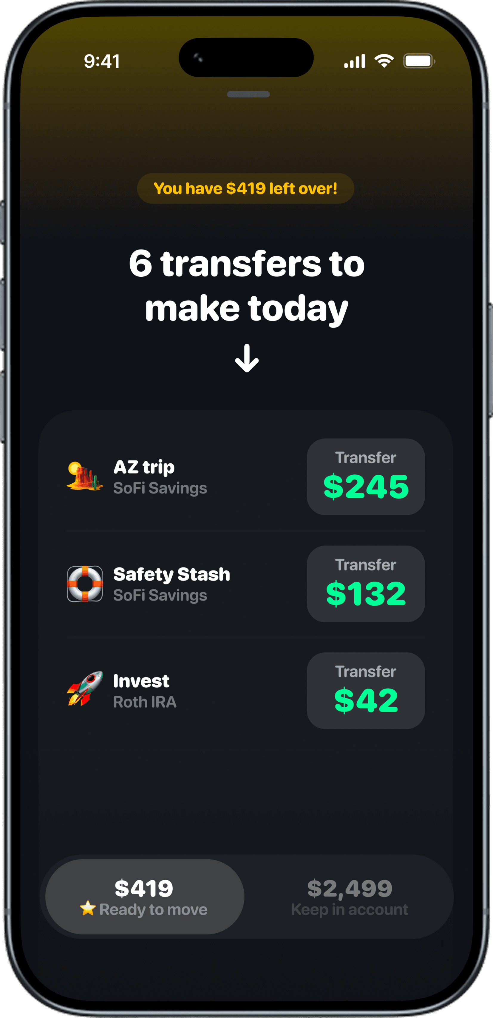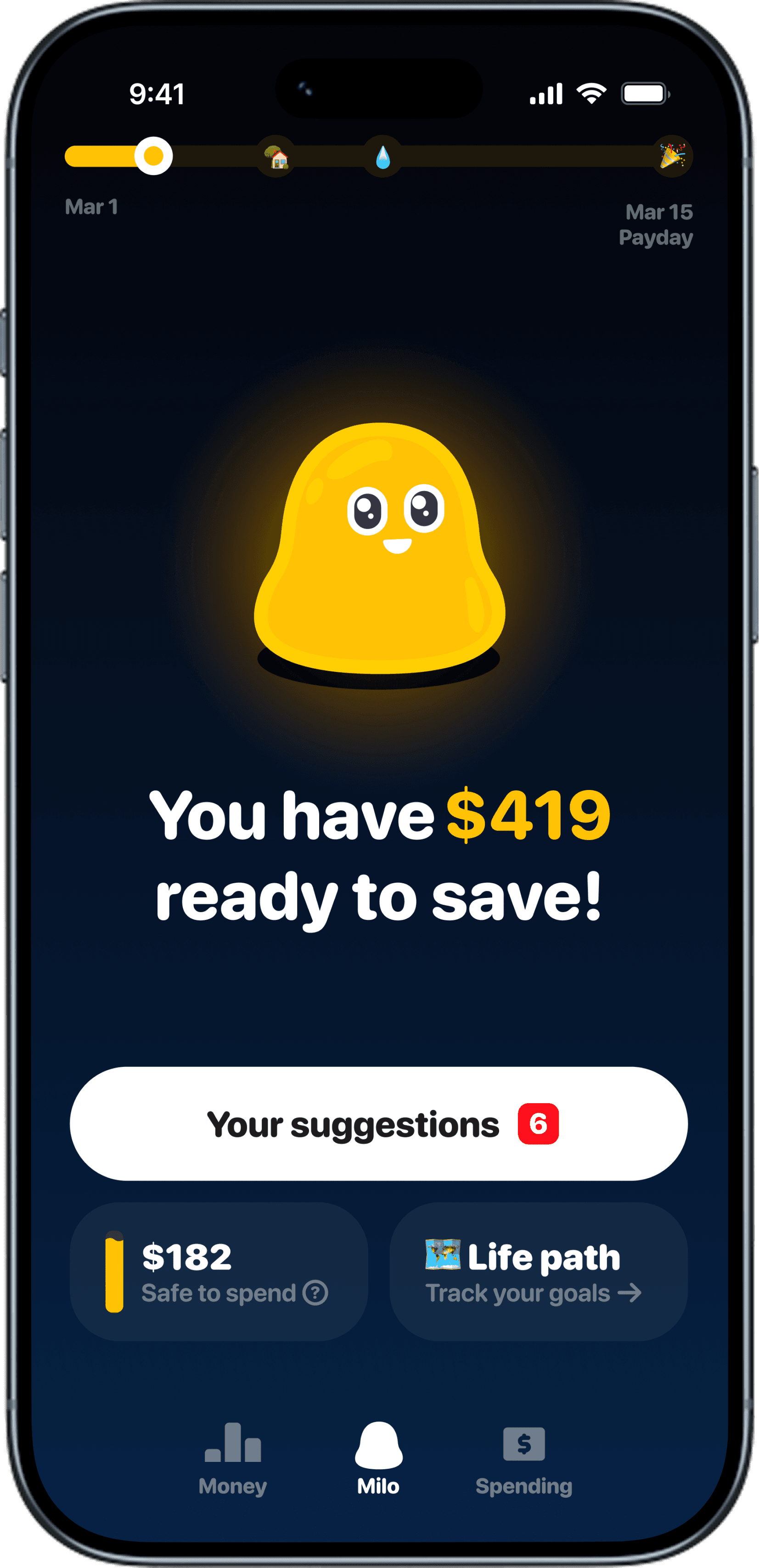 Based on your custom plan, Milo will tell you the best place to put your money every month so you never have to move your guess again.